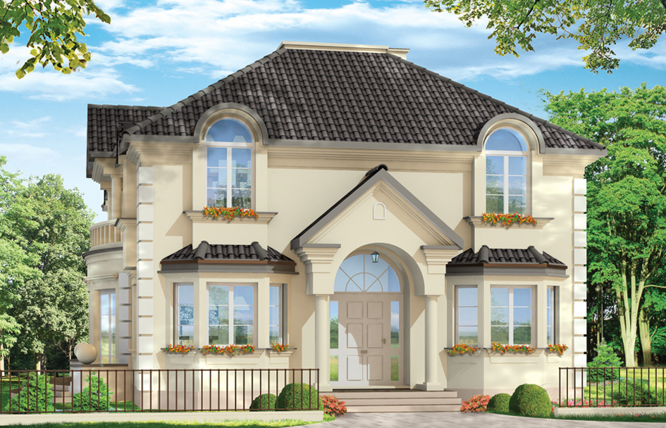 Ambassador 3 house plan is a large detached house for the family of 4 to 6 people. This house plan has a classic architecture with interesting details of the facade. The house fits both to the plot with a garden located on the back and side. The interior of the house was divided on the living area on the ground floor and bedrooms on the top floor. Ambassador 3 house plan exists in two versions: with the planned garage on the ground floor and with no garage but with an extra room. There is also a mirror version of the this house plan.