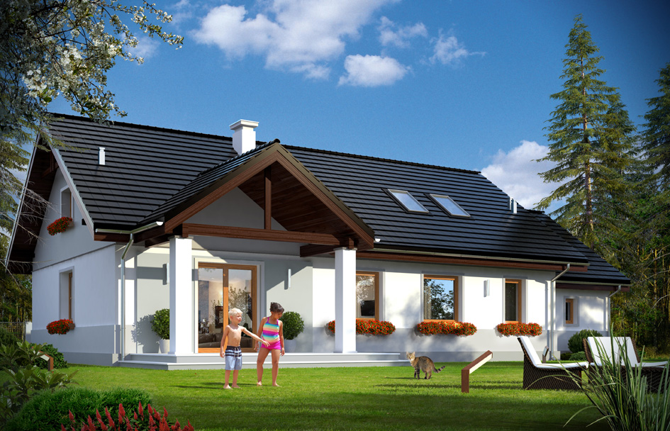 Anatol 2 house plan is the next edition of the popular single-family house Anatol. It is a one-story house designed for the family of 4 – 6 people. Thanks to the large attic, which can be adapted to the usable attic, this house ideally suited for the development, growing family, whose needs may increase. This house plan has attic which can be easily adapt to obtain an extra living space. Architecturally, the house is a simple timeless body of the building, built on a rectangular plan covered by a gable roof. Well-balanced proportions of the facade, and modern finishes, give the house an attractive and pleasing appearance. Functional interior, including all living and technical rooms on the ground floor also makes this house more attractive. On the ground floor there is a living area with living room, kitchen, hall and bedrooms - three bedrooms and an extra room to work. There are also bathrooms, wardrobe, pantry, boiler room and a garage planned. To get to the attic you can use stairs in the boiler room. The attic can be freely planned – you can design 2-3 additional rooms or undivided surface. The house has a simple structure, easy to build. Thanks to that the implementation costs should not be high. With its compact shape and good isolation house is warm and energy-efficient. The cost of living in Anatol 2 will not be high.