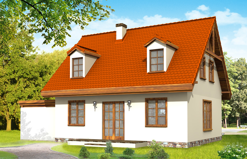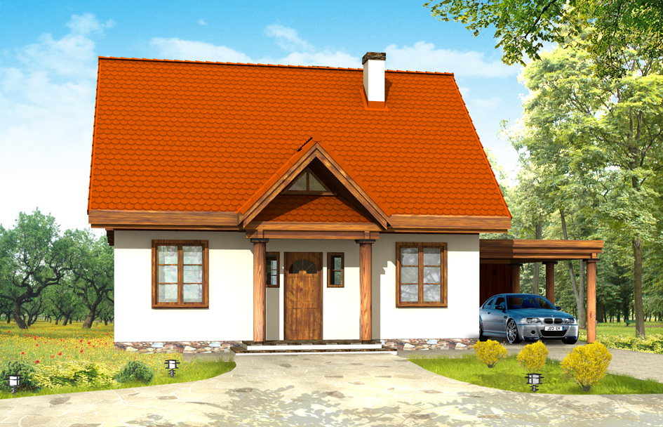 Fairytale house plan is a proposal for the family of 4-5 people. The house is small, but fulfils all the functions, which should have a real house. On the ground floor of Fairytale house is an extra room that could serve as a study, grandmother's bedroom or guest room. Carport can be optionally a garage. There is also a version of this house with a double garage.