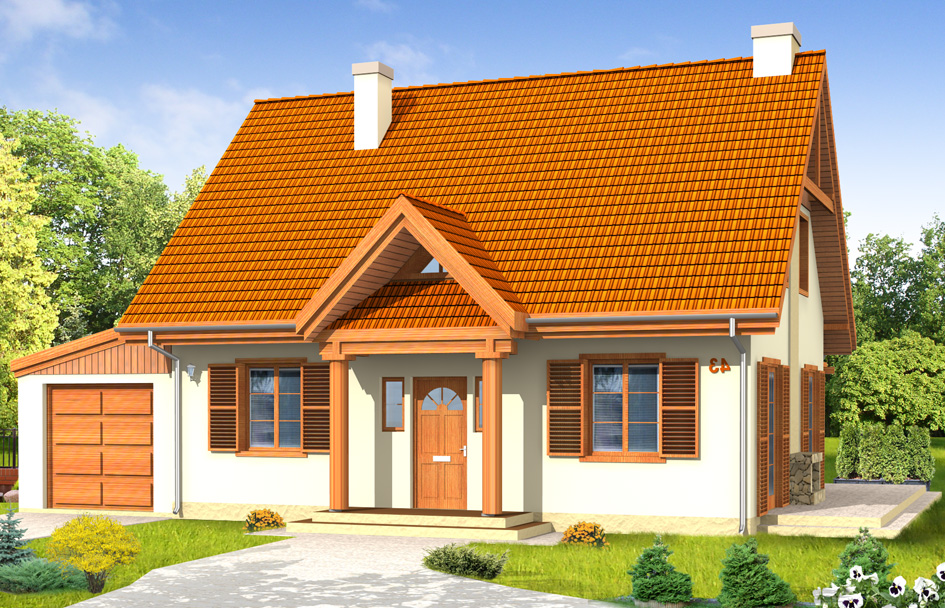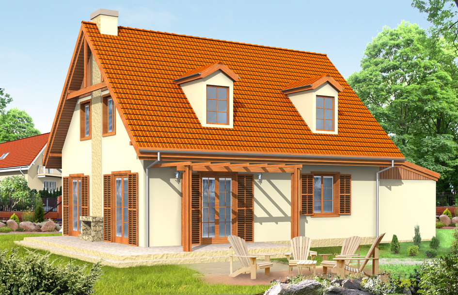 Fairytale 2 house plan is extended version of the Fairytale. The original house plan was expanded, the extra room on the ground floor has been removed to enlarge the living room and the kitchen. Spacious living room with a central fireplace and lighting of the three sides is very attractive. In the Fairytale 2 house plan, the bathroom with the usable annex with a place on the boiler and washing machine was planned. In the attic of the building there are three bedrooms and a second bathroom. Body of the building refers to the traditional architecture. The advantage of this house plan is the universal position and lighting the living room, making the house suitable for a different plot. There is also a mirror version of Fairytale 2 house plan.