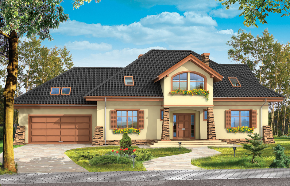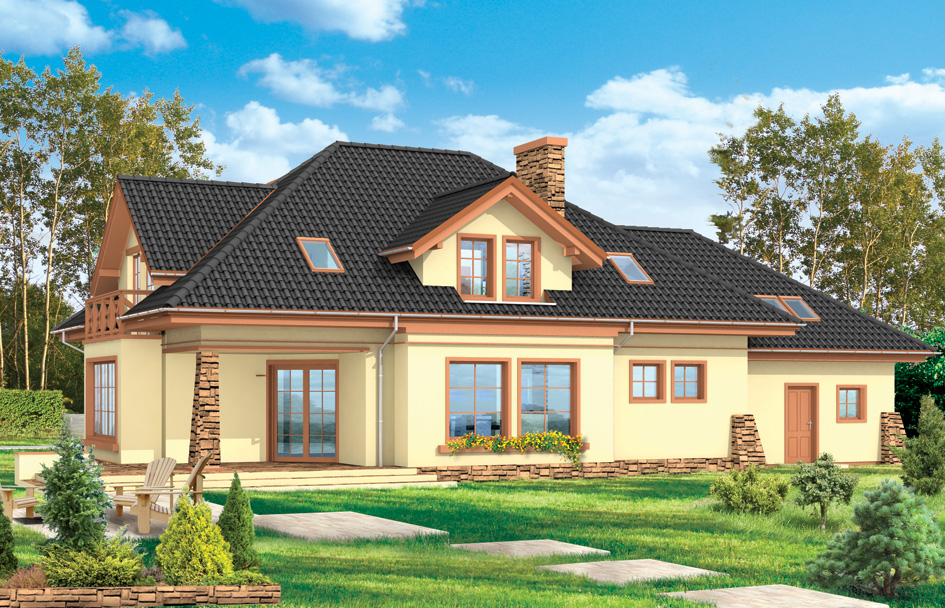 Benedict 4 house plan is a variant version of Benedict house. In this house plan the garage part was expanded and elevations were varied by three additional dormer windows in the main body of the building - one on each facade of the house. Thanks to this, none of attic bedrooms have slanted walls. This house plan have two versions of the adaptation of the attic. There is also available a mirror version of Benedict 4.