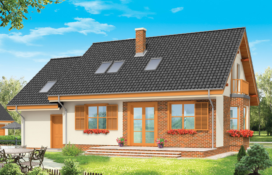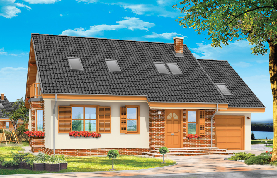 Breeze house plan is a nice, small house for a family of 4-5 people. The house is suitable even for a small plot. The project is distinguished by simple body, easy to build and a gabled roof. The house can be combined in a semi-detached house, contacting by garages. On the surface of less than 140 m2 four rooms on the attic and a living room and an extra room on the ground floor has been designed. Breeze house has two utility rooms, available from the garage. There is also a mirror version of Breeze house plan.