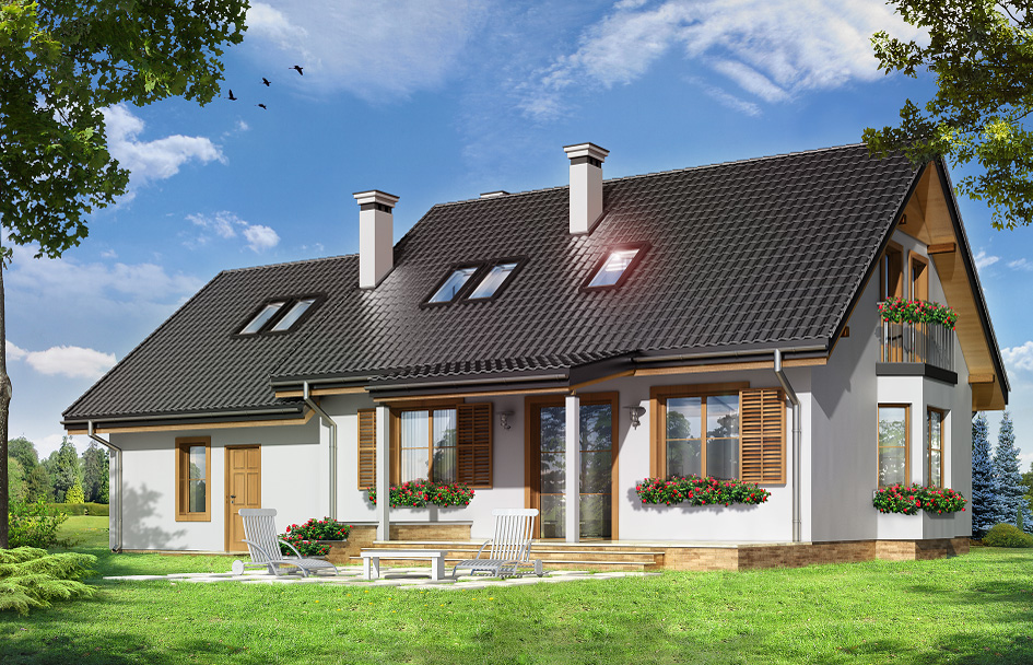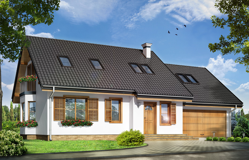 Breeze 2 house plan is a variant version of the Breeze house. From the basic version of Breeze, Breeze 2 house plan differs it enlarged, garage for two cars. Breeze 2 is a small house for the family of 4 – 5 people, which can be adapted even on a small plot. Simple, easy to build body of house has been covered by a gable roofs. This house plan allows on connection of two semi-detached houses in the semi-detached house contacting by garages. On the surface of less than 140 m2 three rooms on the top floor, a living room and an extra room on the ground floor have been designed. In the attic of the house, above the garage, the attic can be adapted for two additional rooms. In this house plan two utility rooms available from the garage have been designed. There is also a mirror version of the Breeze 2 house plan.
