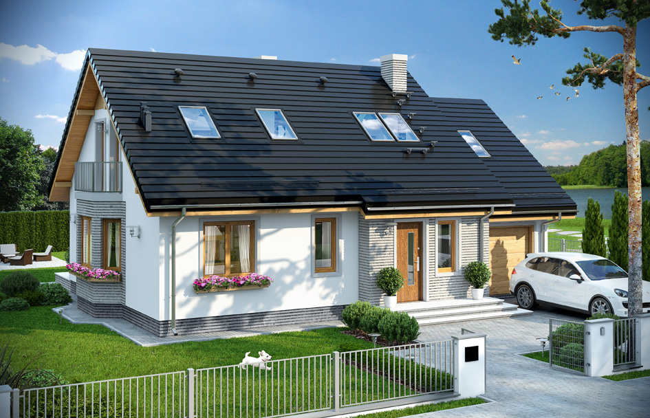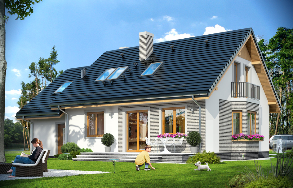 Breeze 5 house plan is the next game in the popular Breeze 3 house plan project - this time in the standard energy-saving, adapted to the requirements of the Scheme. The house is very well insulated, has a modern energy efficient heating systems and mechanical ventilation with recuperation. With its compact shape and advantageous ratio to the volume of external walls, heating your home will cost 2-3 times less than in the average single family home. Breeze 5 house plan is one-storeyed house with the usable attic and a garage part added to the main body of the house. This house is perfect for a family for the 4-5 people. On the ground floor there is a living area with living room, kitchen and hall, and an additional room with a private bathroom. In the utility part of the house, a garage with a corner storage and boiler room is designed. On the top floor you will fine three bedrooms and bathroom. Above the garage is an attic that can be adapted for an extra room. Breeze 5 house plan is a simple and inexpensive in construction house. And thanks to an energy-efficient building solutions and technologies will be also cheap in later exploitation. This house is a grate proposal for practical and modern-minded investors.
