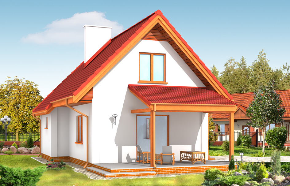 Crumb house plan is an extended version of Pine house plan. The building has been increased by utility room on the ground floor, porch with a visor before entering and partly covered terrace. Crumb house plan is a great option for a small family, it can serve both as a holiday house as well as year-round. The building is cheap in construction and subsequent operation. Its shape has been formed with a view to possible expansion. Partial basement can be helpful when you need to place in your home for example hydrovor. There is a large living room with fireplace on the ground floor, with access to a partially covered terrace. In the attic we designed two large bedrooms. Our studio has a mirror version of Crumb and the version without basement or with complete basement.