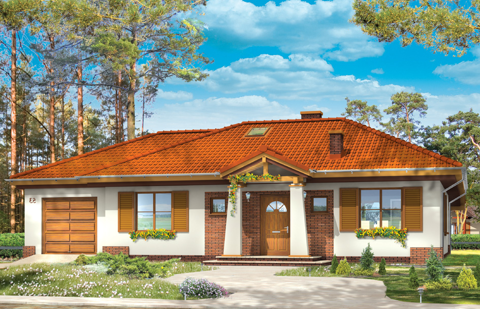 Four corners 2 is a variant of the Four corners house plan, this time with a single garage. This is a proposed for less motorists, but especially for investors with a narrower plot, making up less space for the house itself. The residential part is identical to the basic house plan, only the garage has decreased. It was also designed an attic over the part of the house that can be used as a storage room. This house plan is a proposal for a family of 4-5 people who likes life on one level, close to the garden. There is also a mirror version of Four corners 2.
