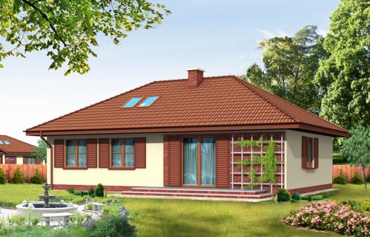 Dominik house plan is an elegant, small single-family house even for a family up to 7 people. Envelope roof, ornate entrance portico and elevation with clinker formed a successful combination. Inside the house on a small area it managed to fit a living room and five bedrooms, that is unheard in small homes. Dominik house was designed in such way that the attic can be finished in the second stage of building. Dominik house plan is also available in a mirror version.