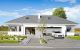 House design Dream 6 is another project from a series of Dream houses from our studio. A one-storey house, with an attic, to be arranged, built on a rectangular plan, with a garage part protruding on the front, covered with a hipped roof with a 30 degree angle of inclination. The design has a modern style and combines a traditional shape with a classic roof, with modern finishing materials and details. The combination of white plastered walls with claddings imitating concrete, as well as gray or graphite tiles give the elegant and representative appearance of the building. Despite the small surface, the house looks very comfortable and larger than it really is. The main stylistic details of the project are: a protruding garage and entrance gate, and a representative front door with transoms. From the garden side we have large glazing that opens the living room to the terrace and garden, and a pergola covering part of the terrace. Interior: other than the location of the garage, in the central part of the block, it facilitates communication between the garage, vestibule and boiler room, which is rarely found in rectangular shaped ground floor houses. The garage is in a great place - at the entrance, near the lobby, kitchen and pantry. From the vestibule, we enter the lobby and straight into the living room. The living room is illuminated from two sides - from the garden with wide terrace doors, and from the top of the building. The attraction of the living room is the emptiness above the living room with a mezzanine in the attic, enlarging the living space visually. On the other side of the house we have four rooms, a bathroom and a wardrobe. Above the ground floor is designed attic, with mezzanine above the living room enlarging its space, and an additional attic space, which can remain a non-usable attic (home storage), or it can be developed into utility rooms - according to the wishes and needs of the owners. Dream 6 house plan is a comfortable, comfortable villa for a family of four - functional and practical. The building is energy-saving, has a simple construction, will be easy to build and cheap to maintain.