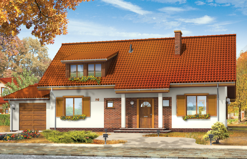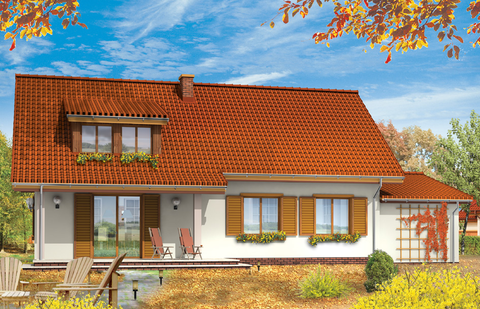 Epigram 2 house plan is a single family building for a family of 4-7 people, with the possibility of development and changing housing needs. Thanks to the extra room in your attic and the proximity of the stairs from the entrance house can be successfully divided up into two independent apartments. Simplicity of design Epigram 2 house and easy to make roof is indisputable advantages of the project. On the ground floor except the living room connected with a kitchen and hall there are also three bedrooms. At the attic there are additionally three nice rooms. The house can inhabit by a large family or two families. You can also living on the ground floor take advantage of an attic as a undivided studio for any function - such as recreation or work-related. For the residential part of the house a garage with utility room was added. There is also a mirror version of Epigram 2 house plan.