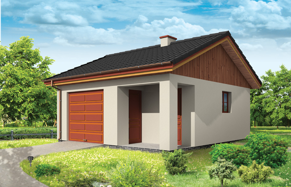 Single garage with utility room and additional output from the side or front elevation (also available as an outbuilding) covered with a gable roof.
