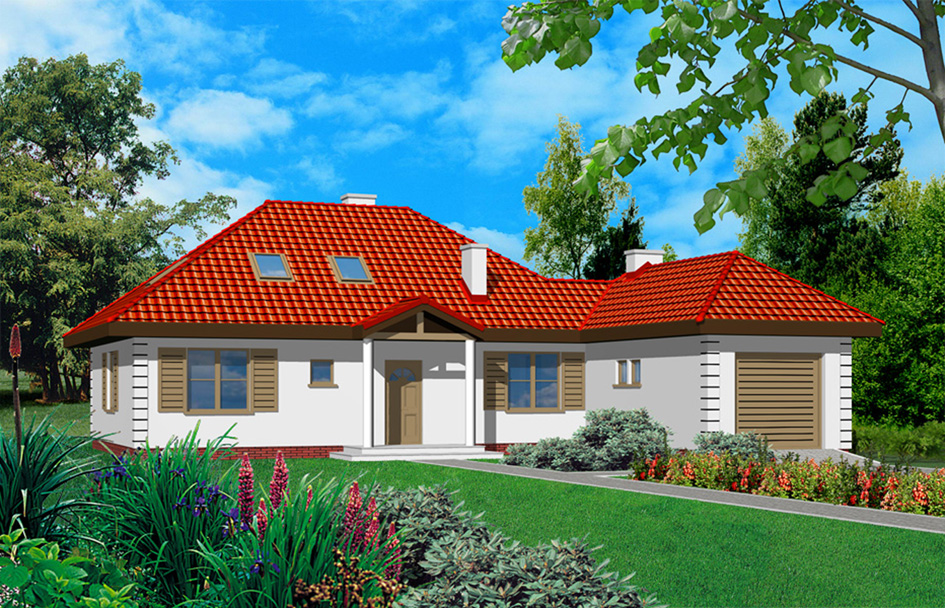 Like a dream 2 house plan is an enlarged variant version of the Like a dream house plan. In addition to the functional layout on the ground floor, also the attic is designed to free adaptation and the garage with utility room was built on. The building stands out is has interesting, traditional solid. The hipped roofs and entrance portico refer to the aesthetics of Polish manor house. Simple construction of house allows for possible changes in the interior, and for the construction stages. This house plan is also available in mirror version.
