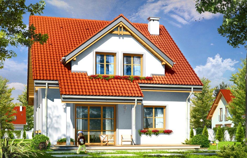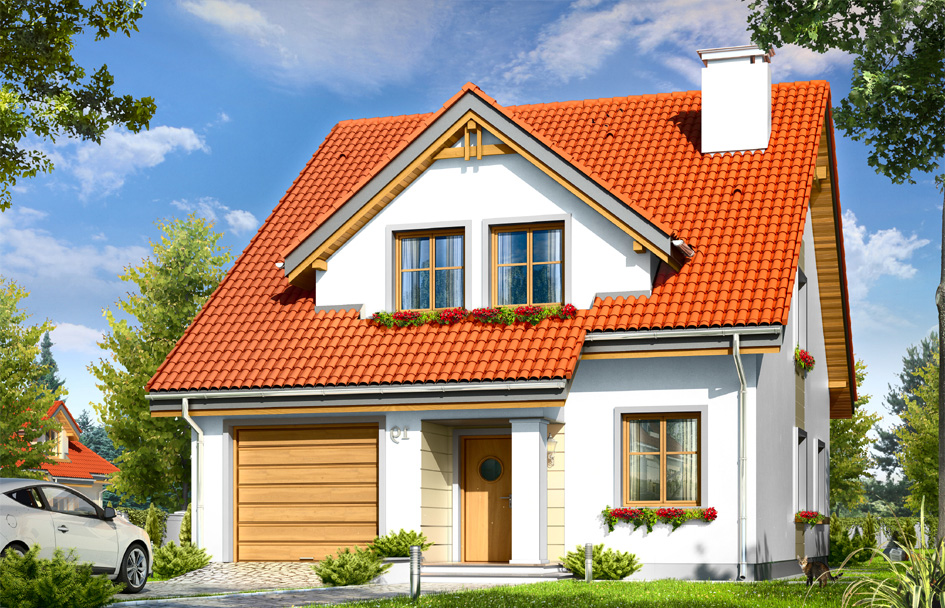 Seagull is a family house for a family of 4 to 5 people. This project combines traditional solid appearance, unpretentiousness, simplicity of design, functionality and clarity of the interior. Seagull house thanks to a compact block, built on a rectangular plan, is energy efficient, easy and inexpensive to build. Thanks to a fairly narrow front facade will fit on a plot with a width of only 16 meters. The building can be easily converted into a duplex or row house. A simple structural system --storey block with an attic covered by gable roof - it should not make trouble any building team. The correct ratio of the surface building envelope to the obtained cubic volume favors the energy efficiency of the building. Exterior appearance of Seagull house perfectly fit into the suburbs of neighboring buildings. The facades diversified large dormers in gable roof, protruding slightly garage with arcade entrance and - from behind - roof of terrace on which we can go from the living room by a nice glass door. The interior of the house is divided into a living area, and utility area on the ground floor and bedrooms in the attic. On the ground floor a very nice undivided interior was planned comprising of living room and dining room, kitchen and hall. The kitchen is open to the living room - it can be easily separated by a partition wall. Other rooms on the ground floor is a convenient garage with storage under the stairs, boiler room, bathroom and porch. In the attic we can find four very nice, easy to arrange bedrooms, and a bathroom. The interior can be modified by moving partition walls - leaving, for example, three bedrooms and adding another bathroom and a walk-in closet for parents. Above the attic it is still a nice loft, which can also be adapted. The house is designed for customers looking for a simple design, no frills, wanting to "squeeze" as much space for reasonable money. There is also available a mirror version of Seagull house.