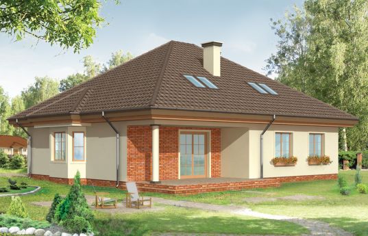 Natalie house is comfortable, spacious family house for a family of two or three generations. Natalie house has an envelope roof, arcades, bay window and clinker cladding form a successful combination. The interior of the house is designed so that the first stage could be disposed only the ground floor. Rooms on the ground floor can be a bedroom and parents office, grandparents bedroom or guest rooms. Loft can be finished in the second stage. There is also a mirror version of the Natalie house plan.
