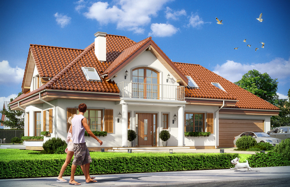 Ophelia house plan is a very similar to Julka house plan. Ophelia house plan - thanks to its symmetrical facade of the front porch and a large dormers with a balcony above the entrance door, also recalls also another house with our collection - Benedict 2. At a time when everyone chase for modernity nice to have a reference point - something changeless, not coming out of fashion. House of traditional architecture, which certainly gets old when the next pass fashion houses - the box. House of traditional architecture, which certainly not gets old when the fashion for houses boxes will pass. Ophelia is the an example of manor style, and to this it is a house with a modern functional interior, designed in a modern, energy-efficient technology. Unpretentious architecture, with preserved harmony, proportions and symmetry of each façade, perfectly fit in with any environment. The block of house is representative, but retains a human scale. On the ground floor there is an open living area - living room, dining area, kitchen, hall, two additional rooms and utility part - garage and boiler room. In the attic there are three good-sized bedrooms with wardrobes, and a large bathroom. Above the garage is a loft that can be used as an attic. Comfort and space are the basic asset of this house, it is a real small residence. We have here pantry, a dining room that can accommodate a large table, living room, wide and comfortable staircase, a large hall or porch. Materials and technologies used in Ophelia house plan are energy efficient design layout is clear and not cause trouble for the contractor during construction. Ophelia house plan certainly will appeal to people looking for a comfortable, well-thought-house, who on the one hand dreaming of a representative villa, on the other hand, do not want to overdo it with the size of the house. There is also available a mirror version of this house plan.