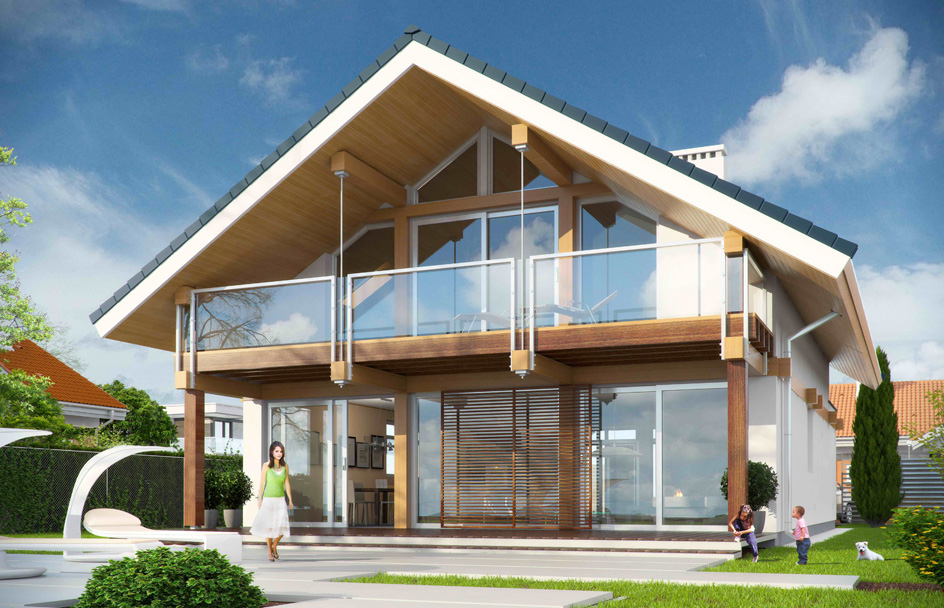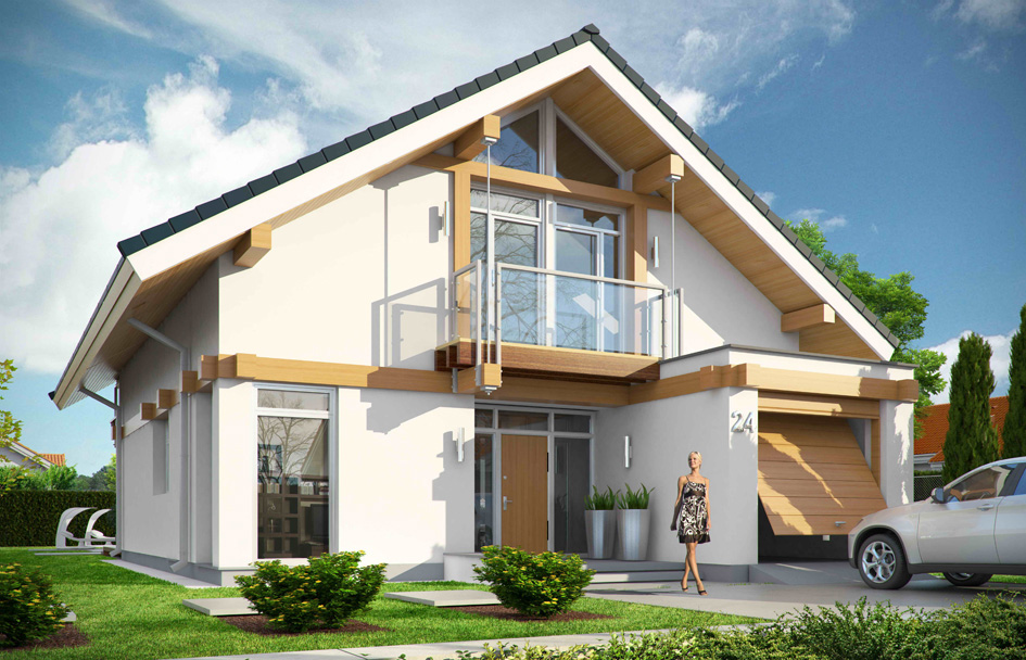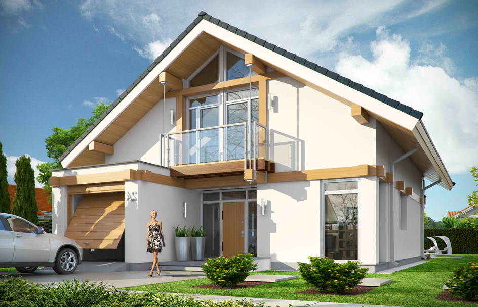 Open house 3 is a smaller variant version of the popular house Open . The house is comfortable urban villa for four- to six people.. The compact shape of the building, with a rectangular plan, is covered with a symmetrical gable roof. Simplicity of design and architectural saving of forms is combined here with an interesting and nuanced detail and solid modern materials. Architecturally Open 3 is a proposal for those wishing to a modern house in traditional "skin" of the building with a gable roof. Watching the house immediately are conspicuous beautiful glazing contrasting with fragments of solid walls. It seems to be a lot of windows, but - in spite of appearances - is not more than in any other houses, they are just arranged differently. The interior is divided into living and technical area on the ground floor and bedrooms in the attic. House beautiful open to the garden, thanks to the balcony window, a living room, connected with lobby with exposed staircase and partly open kitchen. Daily space is phenomenal for a building of this scale. The entrance to the house - thanks to door with side lights - is a representative and very glamorous. On the ground floor there are: an extra room - study or bedroom, garage and boiler room. In the attic we proposed four bedrooms and a large family bathroom. You can successfully converted two bedrooms in the parents’ apartment with their own bathroom and dressing room. Open 3 has a very logical system design which is simple in construction. The only extravagance of the house are beautiful garden glazed. There is also available a mirror version of this house plan.