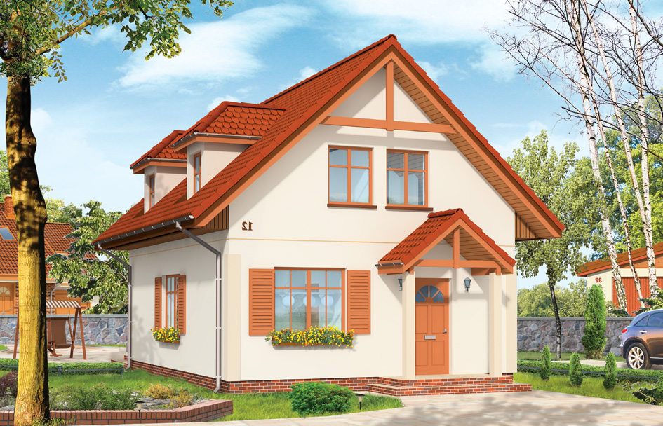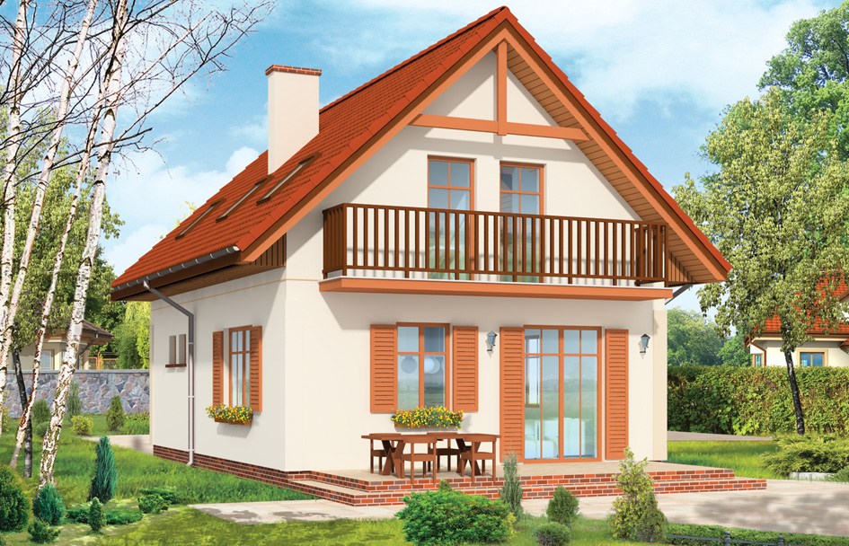 First house plan is a proposition for your first house. Fit on a small area and a small budget, you get everything what you could expect from real house. This house plan has on the ground floor a large living room with semi-open kitchen, utility room, and in the attic there are three bedrooms and a bathroom. We have also a version with a garage at the front and on the side of the house. There is also available mirror version of this house plan.