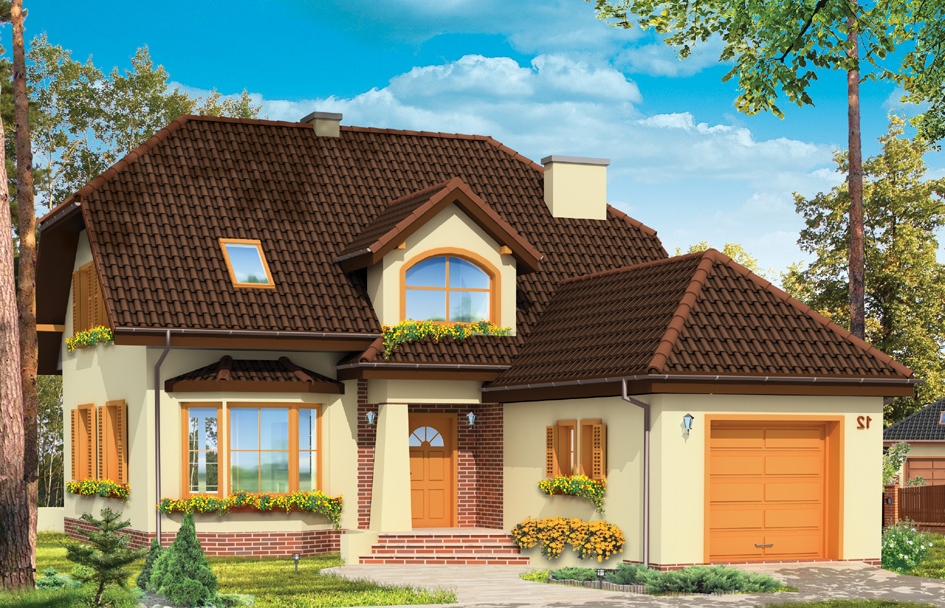 Cheerful 4 house plan is another version of Cheerful house plan. The building is ideal for narrow plot. The interior has been designed in such way that the living room is lighted from the three sides. Thanks to this house can be built on a plot of adverse sunlight. On the ground floor in addition to a large living room, kitchen overlooking the garden and extensive lobby there is an extra room with a private bathroom and a garage. On the top floor there are three bedrooms (two with walk-in closets) and a bathroom with walk-in closet (or laundry). Cheerful 4 house plan is also available in mirror version.
