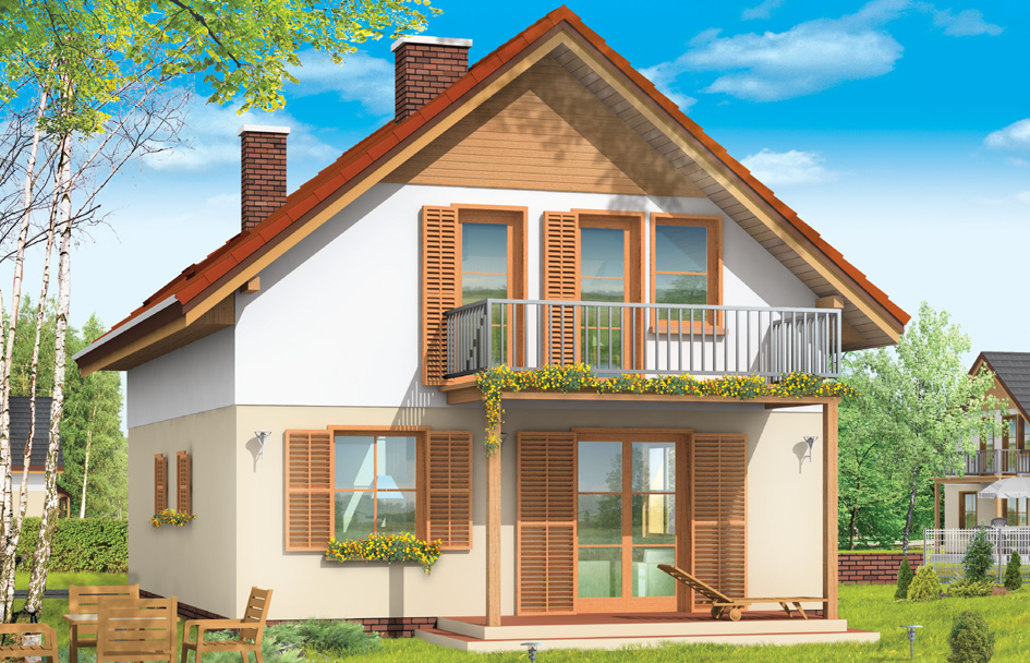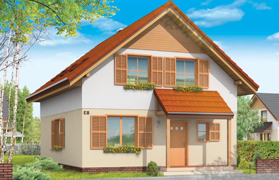 Practical B house plan is a small family house for a family of four. This is a storey building with an attic. The same house plan we presented in two variants - as a family house for one family and the house divided into two premises - with two separate apartments on the ground floor and in the attic. This version of the house is the house divided into two premises – it is a great solution especially for families living together, for example, three-generation. Bottom flat may be occupy by the main family, on top of the house may live adult children with his/her family. Practical B house plan is simple in construction, and is not have complicated structure – thanks to this implementation costs will be reasonable. Common part of both apartments is a common entrance, boiler room and staircase with the hall. Apartment on the ground floor - two rooms apartment with kitchen and bathroom. In the attic you will find four-rooms (or three-room with separate kitchen). The building may be interesting for multigenerational families, it can also be a great idea for a holiday house - where at once, independently of each other can stay two families.