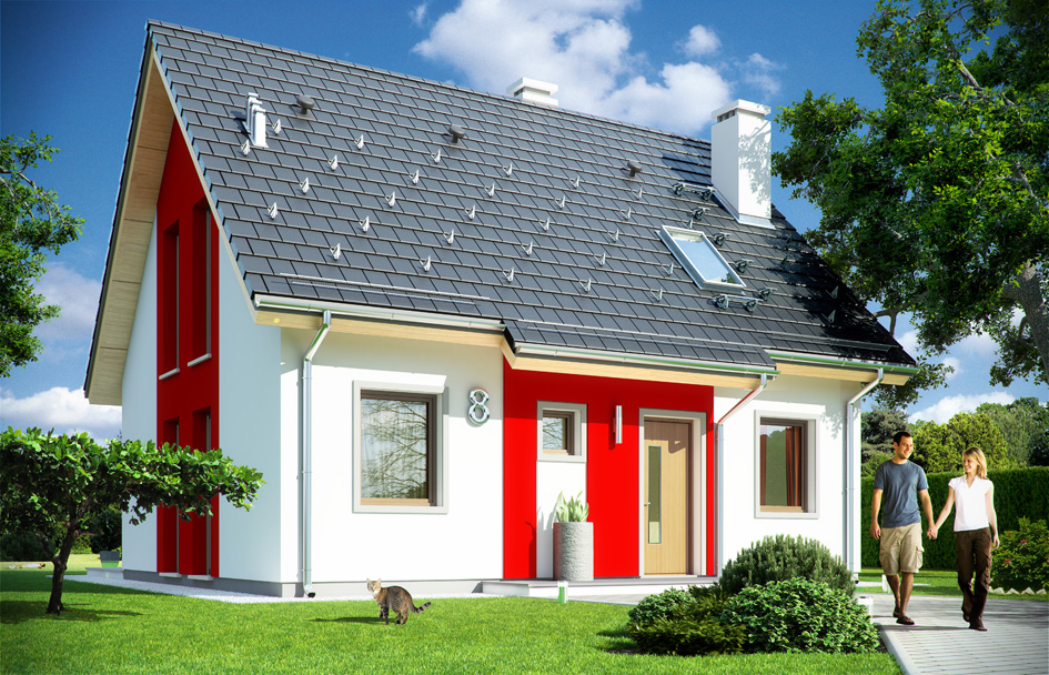 Adventure house plan is a charming house for a family of four-five-people, it is one-storey house with attic having a compact rectangular block covered with a gable roof. Simple elegance of the house and its functionality go together with energy efficiency and modernity. Shape of the house, its proportions immediately recall the image of "little white house" such a house with a chimney from children's imagination. Building a house is a great adventure. Proportional symmetrical body fit into any environment. Modern building materials and colors add elegance to the house. Interior of the house plan accommodates five bedrooms, two bathrooms and a separate boiler room. On the ground floor we have a living space connected to the living room, hall and kitchen, and an extra room. In the attic there are three bedrooms with a private bathroom. The interior is easy to arrange and functional. Construction is very simple and clear and will be easy and inexpensive in building. Thanks to very good isolation of walls, floors and roof, the house is energy efficient. Is very easy to adapt to the NF40 standard. Surface of house allows to qualify the project MDM program requirements.