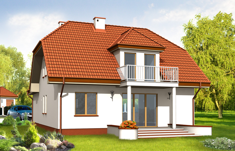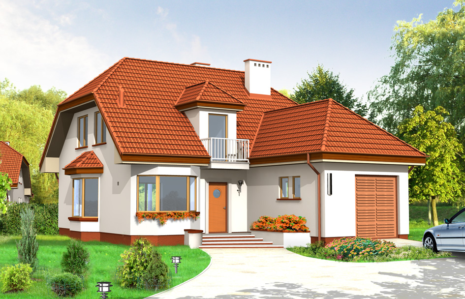 Cozy is a real suburban house, the seat of the happy family. The house emanates peace, stability, but also the joy and energy - all thanks to the combination of traditional elements with modern architecture. Body of the building with protruding garage perfectly blends into narrow plot. The interior of house was planned by separating the living area on the ground floor (where in addition to living room there is also a technical room and office and bathroom) from the bedroom in the attic. On the first floor there are three comfortable bedrooms, dressing room and bathroom. In this project each bedroom has a balcony. There is also available mirror version of this house plan.