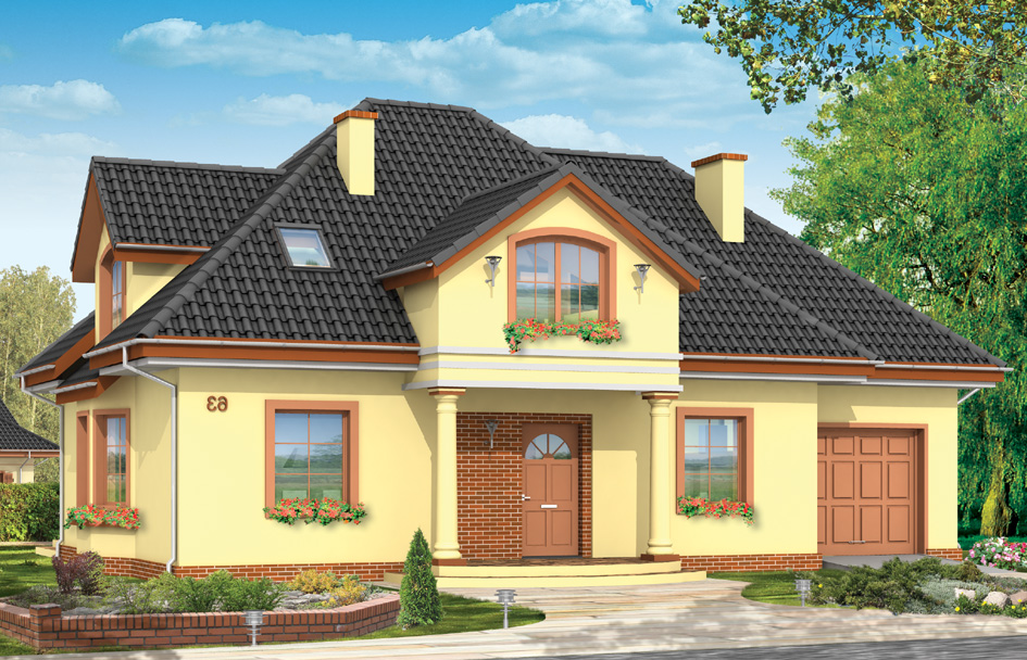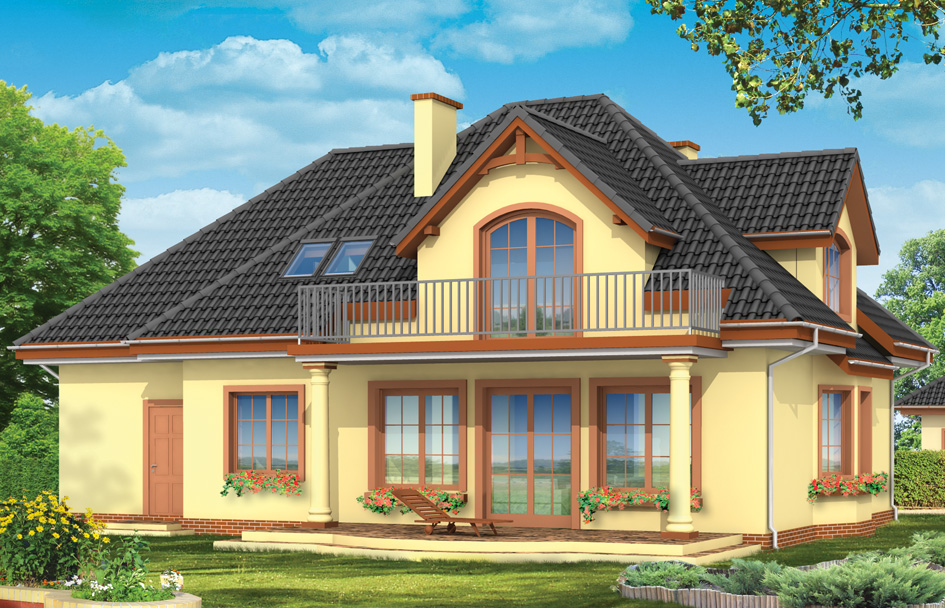 Saga 2 house plan is a variant version of house Saga. Detached house for a family of 4-5 people, with classic architecture, which refers to the Polish manor house. Inside the building, like in the Saga has a large lounge with dining area accented by with extensive glazed bay window opening the interior to the patio and garden. The spacious, partially open kitchen with hall increase the surface area. On the ground floor was designed an extra room, garage and boiler room. In the attic there are three bedrooms with wardrobes and a bathroom. In house Saga 2 the attic above the garage can be exploited for the room. There is also available mirror version of this house plan.