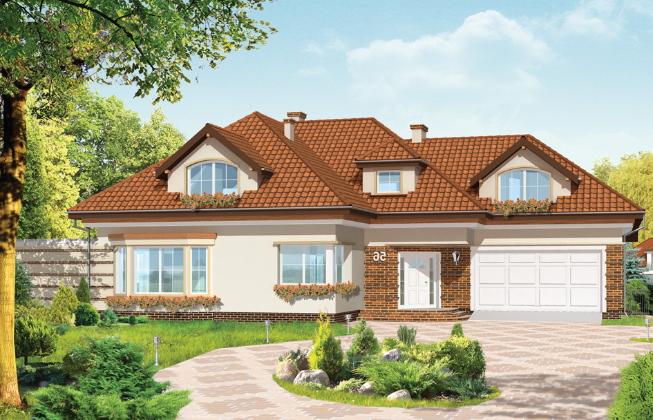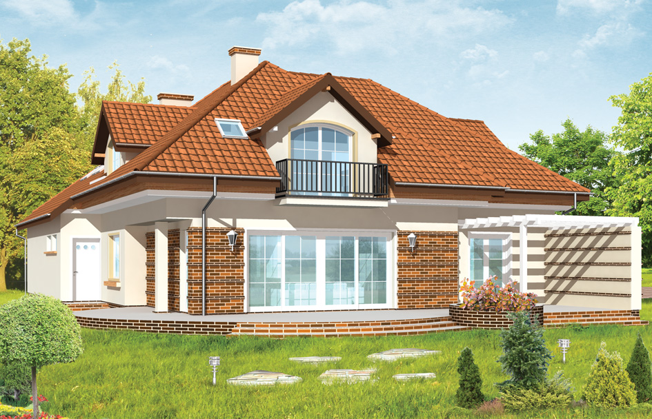 Abode house plan, is a comfortable house for a family of 4-5 people. It combines elements of traditional architecture with modern facilities. Attractive, extended solid with dormer windows with bay window, dining room, terrace with pergola, or arcade entrance are combined into a harmonious whole. It gives the impression of stability and peace. The interior of house Abode with a comfortable entrance hall entrance, nice lobby with stairs treatment rooms, a large open living room to the garden - is functional and interesting. In addition, we designed a room on the ground floor and comfortable bedrooms in the attic - with separate apartment parents - complete the whole. The building is large, but its interiors are logically designed and thought out - without wasting space. There is also available mirror version of this house plan.