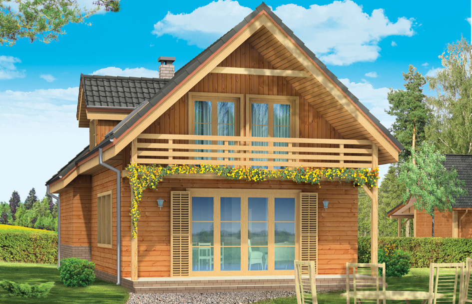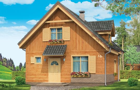 Nightingale is a one-storey building with usable attic. This is house suitable for a family of 4 to 5 people, which could serve as a year-round house and summer house. House is charming, thanks to interesting details and has in fact a fairly simple layout. Building, due to the simple structure is easy to build, what would reflect positively to investment costs. Nightingale was created in a wooden frame technology. Elevation of the house is timbered with planks, but you can also do it as a plaster. Thanks to compact design house perfectly fit into the narrow plot. On the ground floor a single space of living area, with a living room, a hall and a partially open kitchen was designed. From the living room by wide doors we go out to the partially covered terrace. Next to the atrium is boiler room. In the attic there are three bedrooms and a bathroom. Nightingale house is also available in the mirror version.
