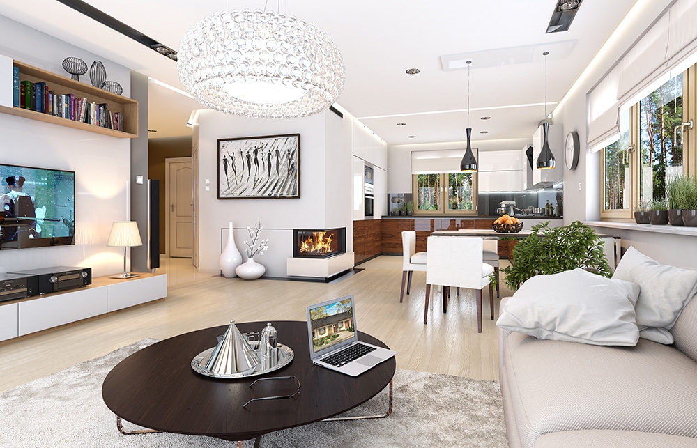 I'll also build this house, in my case decided minimalism: simple and easy to build solid of curiously designed interior.