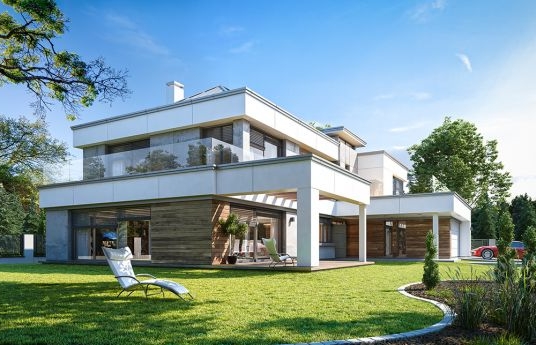 Villa Florida 4 house plan is another proposition of a house from the series Villa Florida - enjoying great interest of customers. The project Villa Florida 4 was based on the details and a form similar to the other "Florid", but with its own well thought out functional program and assumptions. The most important is to designate a house for the plot with entry from the south or east. Both the entrance and entrance to the building, as well as the garden part are basically on the same side. The garden is in front of and to the side of the house. Thanks to sensibly planned interiors, all rooms are placed from the sunny side. The building was designed as a modern storey villa, with large windows, facades divided by horizontal stripes, finished with facings of architectural concrete, plaster and wood. The house consists of a main two-storey block, covered with a mild roof, covered with a seam sheet, and a garage lump attached to it. The entrance to the house is underlined by a arcade, and a bay with a flat roof protruding from the elevation above the entrance, upstairs. The interior of the house is divided into parts: on the ground floor, the daytime and economical - garage part, and on the first floor - the sleeping area. The living area consists of a living room, dining room, lobby and a partially closed kitchen, which is the center of the house - all household members meet in it. The living room is decorated with beautiful glazing on the terrace with a pergola and garden, and a tripartite fireplace. The decoration of the interior is a void in the lobby and cantilever stairs visible immediately after crossing the entrance door. The economic part is made up of rooms in the garage, boiler room, laundry room, pantry, and cloakroom at the entrance. On the ground floor, an additional room was also designed (guest bedroom or office), toilet with shower, and a wine cellar. On the first floor we have a beautiful parents' suite, with a great wardrobe, a bath room with a sauna, and a terrace from the bedroom. The remaining space is two children's apartments, with bathrooms and wardrobes and access to the terrace, and a recreation room. Above the first floor there is a large attic. The building has a fairly simple structure - despite the large area it should not be difficult or very expensive to build. Thanks to energy-saving solutions it will also be inexpensive to operate