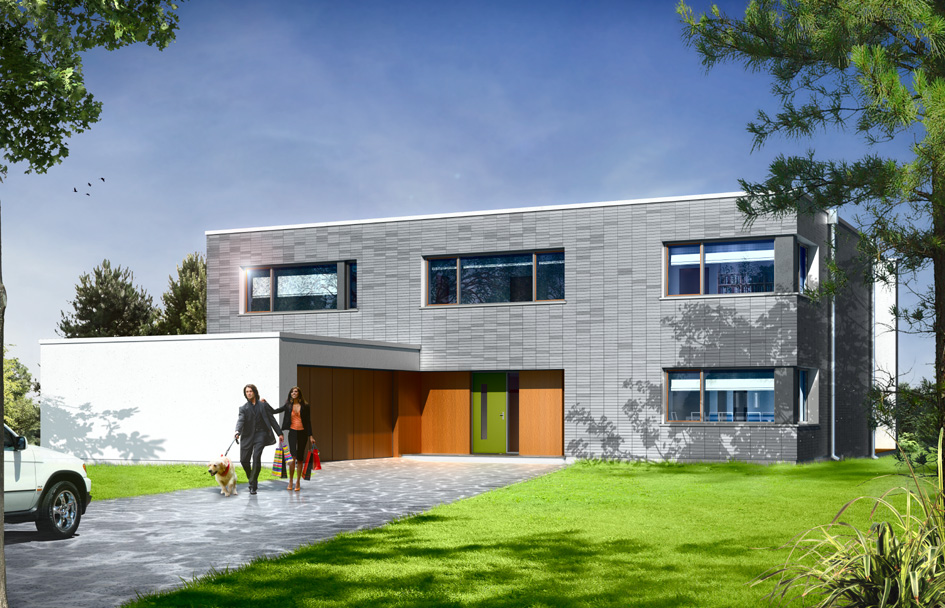 - Elevation - thin-layer plaster on polystyrene, wall clinker, fiber cement slab