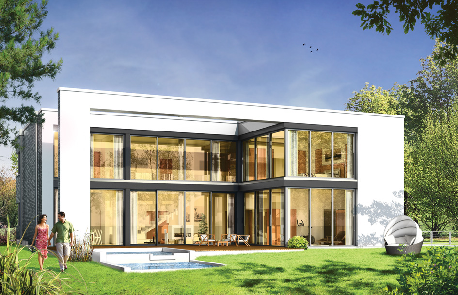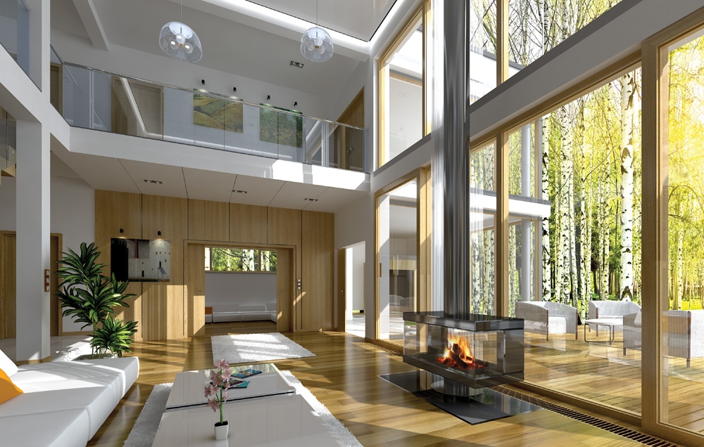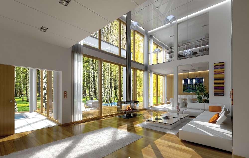 Villa Nova is a luxury modern detached house for a family of 4-7 people. This very comfortable and spacious residence has everything you would expect from a comfortable house. The whole are designed in a logical, thoughtful way. Functional interiors compose here with good proportions of solid and consistent, minimalist aesthetic. Villa Nova, despite modern form, is restrained and warm. The villa has two faces: the front elevation of the house is discreet and monumental, garden elevation has lots of glass surfaces, with a conservatory between the interior with wooden patio, terrace and swimming poo. Large glazed of living room bring light into the house and the surrounding nature. The basic principles of forming the external appearance were the rhythm of the facades, and fine natural materials. Villa Nova gently speaks to the viewer by good taste. The interior of the villa is organized around a high-living room, which with the surrounding rooms on the ground floor and a mezzanine on the first floor creates a luxurious living space. The rooms are large, full of light, comfortable bedrooms with walk-in closets or large wardrobes. Number of rooms, bathrooms and utility rooms is optimal for each family. In addition, partitions can be freely adjusted by arranging the interior in their own way. Very good thermal insulation, mechanical ventilation with recuperation, solar panels, heat pump - all this means that the house is "green" and cheap to run.There is also available mirror version of this house plan.