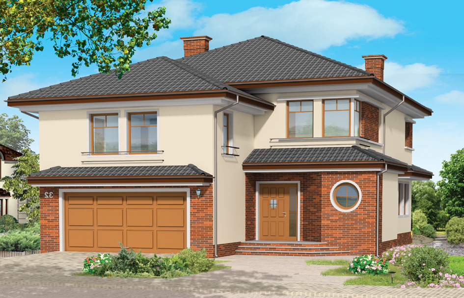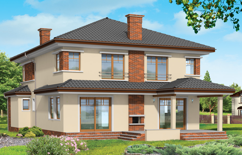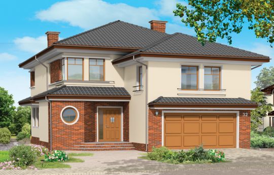 Convenient 2 is a variant version of the project Convenient. House has been reduced, so that it can fit on a smaller plot. We eliminated basements - as a result the house has a floor area just over 200 m2. The architecture of building is typical for a city villa - storey house with a mild, hipped roof. The interior of the house is a very nice living room on the ground floor connected spatially with dining room, hall and kitchen. On the first floor are four rooms, including a separate master bedroom with its own bathroom and walk-in closets. There is also a mirror version of the Convenient 2 house plan.