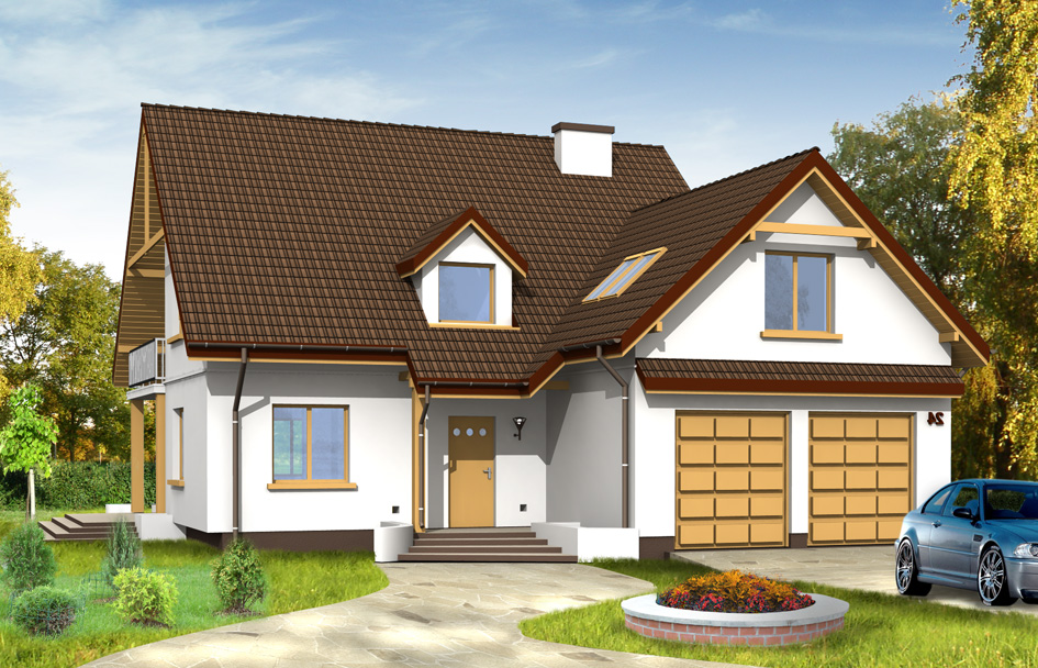 Zalesie is a convenient house for a family of 4 to 5 people. Quiet toned solid interacts with functional interior. This house fit perfectly on a narrow plot, even though it has a garage for two cars. The interior of the house: on the ground floor is a large living room, kitchen with annex and office room. In the attic we designed four bedrooms, large bathroom and dressing room. There is also available in a mirror version of Zalesie house plan.