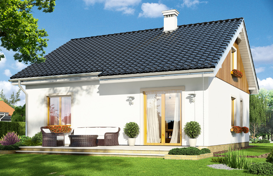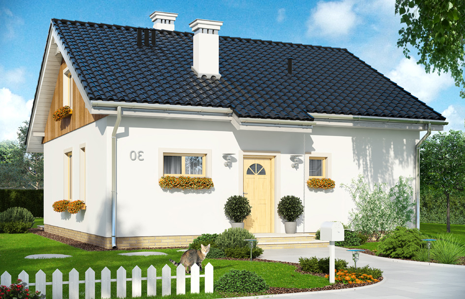Sophia 2 is a variant version of the popular "Sophie" house plan. Simple, single-family house has been enhanced with additional attic for possible later adaptation. The house has possibly the simplest solid – is built on a square with sides 9.5 meters, covered by a gable roof. This construction is inexpensive in build. Compact solid of house include a functional interior. Due to the good ratio of surface external partitions to cubic volume, the house is warm and easily may be energy efficient. The interior of the house: on the ground floor provides a living area with living room, kitchen, hall, and three bedrooms with private bathrooms. Additionally vestibule, boiler room and toilet. The attic above the ground floor can be adapt into two additional rooms. Stairs - thanks to the wooden ceiling structure - can be easily integrate to interior.